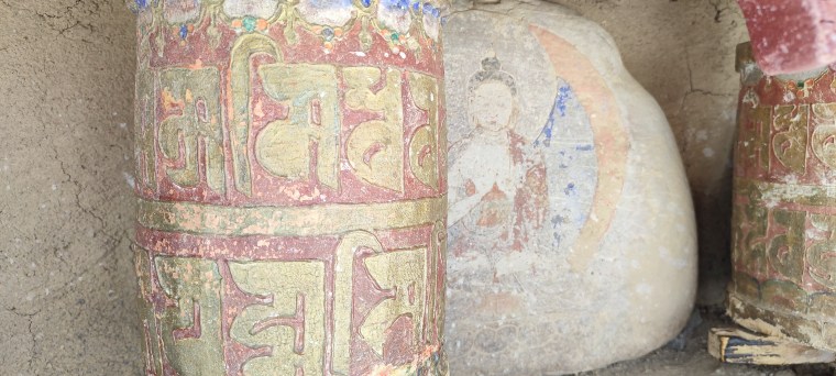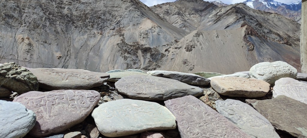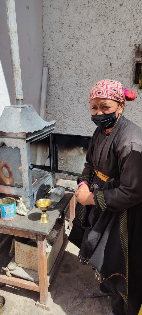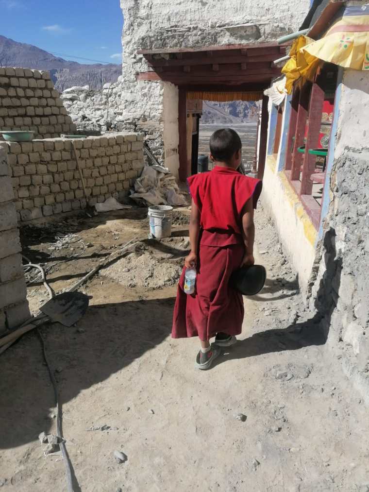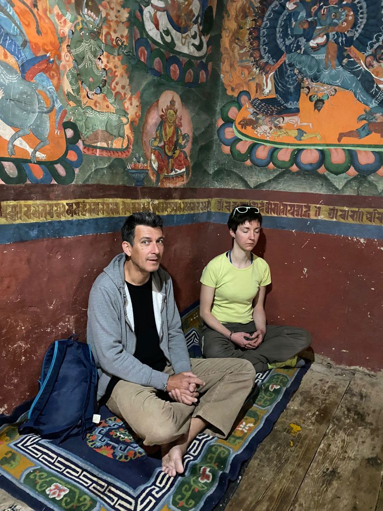 Nous visitons dans un des plus vieux temple du Ladakh, à LAMAYARU, une salle interdite habituellement aux touristes, très chargée en énergie ! Le tout petit village est en cours de travaux pour le tournage du film, ce qui expliqait la présence d’Anurag.Fageriya dans cette contrée si reculée.