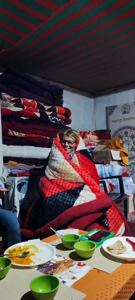 Nous nous installons dans nos chambres pour prendre un peu de repos afin de nous acclimater à l’altitude, nous sommes à 3500m ! Je me régale de retrouver les momos, raviolis tibétains, nous savourons tous une merveilleuse soupe de petits-pois-maïs!