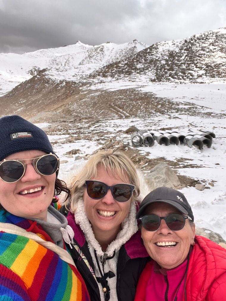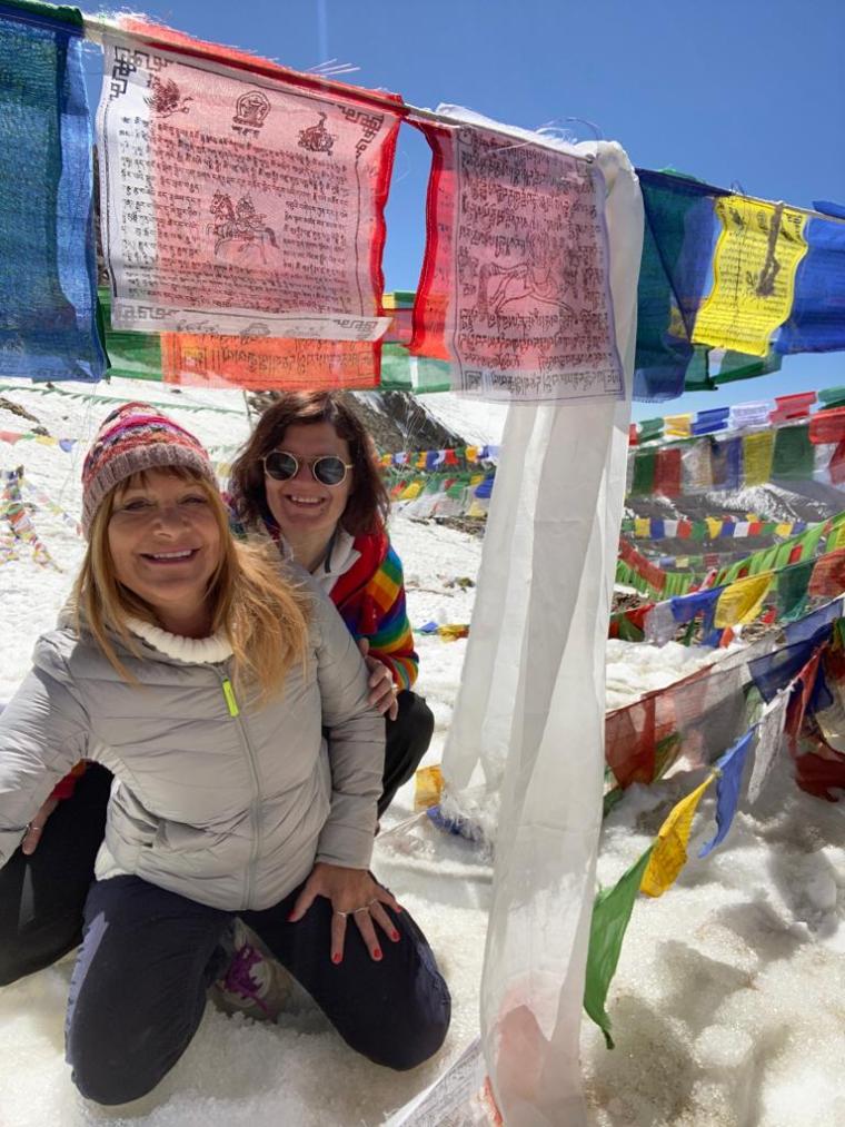 Nous parcourons ensuite la route la plus haute du monde, à 5400m :KHARDUNG LA . Le trajet est très impressionnant, sur une seule voie, le bas côté est instable et nous nous faisons doubler à des moments improbables ! Heureusement que nous avons de merveilleux chauffeurs qui savent nous rassurer ! L’arrivée au sommet est très éprouvant et émouvant. Nous déposons nos drapeaux de prière après chanté notre mantra chouchou et et crié « kiki so so lha gyalo« , message d’humilité envers les dieux protecteurs aux sommets des montagnes.