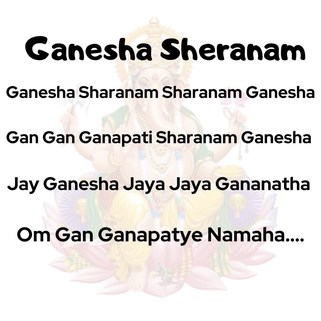 « Je prends refuge dans la protection du Seigneur Ganesha. Je présente mes salutations à Ganesh. Victoire à Ganesh«