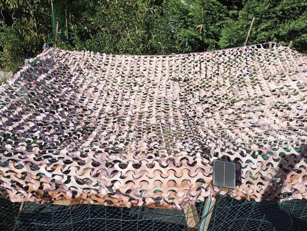 Nous avons également protégé leur maisonette du soleil avec un filet de camouflage.