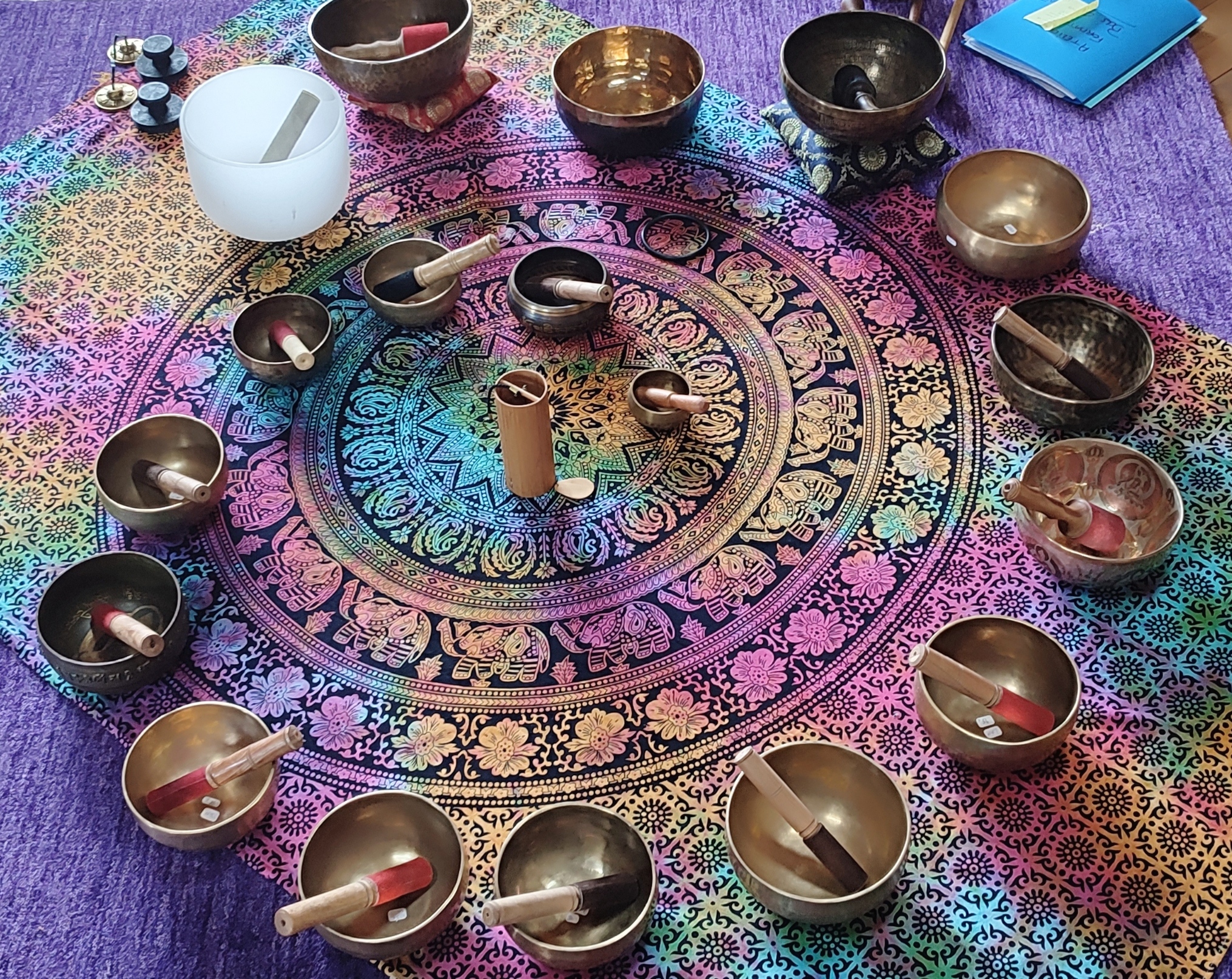 Les bols chantants sont entrés dans mon univers il y a une quinzaine d’année, alors que je recherchais un support pour aider les personnes que je recevais dans mon cabinet à retrouver de l’harmonie et de la détente entre deux séances de coaching.