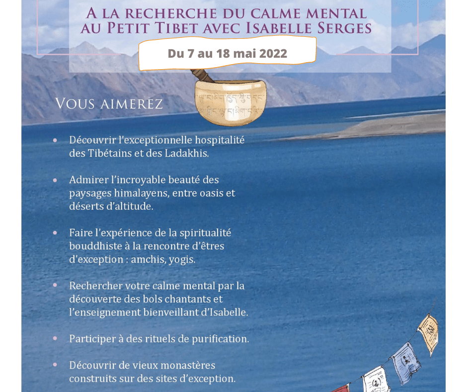 J’ai eu le plaisir d’être invitée par Omalaya Travel pour accompagner un groupe de personnes qui souhaitaient se former à la méditation dans le nord de l’Inde, au « Petit Tibet », en février 2019, voyage qui s’est renouvelé en mai 2022 aux côtés de Shanti Om Travel pour un autre groupe.